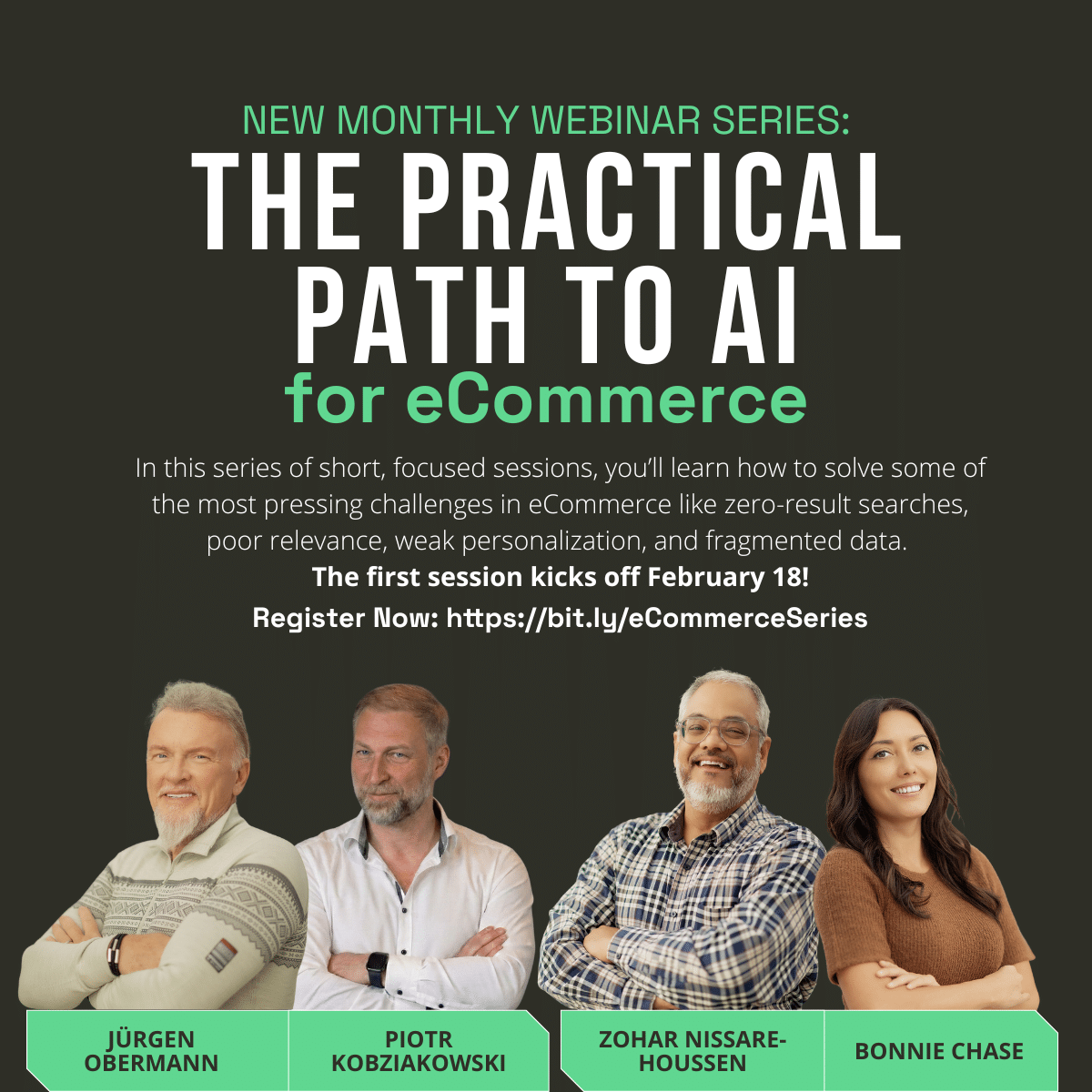 In this series of short, focused sessions, we’ll tackle some of the most pressing challenges in eCommerce, including zero-result searches, poor relevance, weak personalization, and fragmented data. We will show how AI can solve them step by step.
